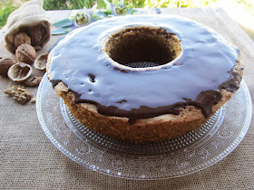 Para la decoración emplee dos círculos que hice con papel de hornear, uno pequeño para el centro y uno más grande para el borde. Podéis usar el diseño que más os guste. Una vez esparcido el cacao retiramos el papel con cuidado.